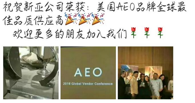 Congratulations once again to our New Asia for getting the award: Best Quality Supplier in the world of AEO (American Eagle Outfitters )