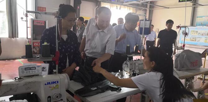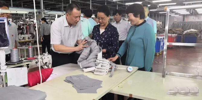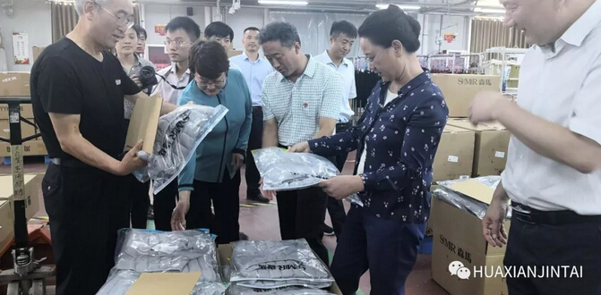 13802436161At 13:00 p.m. on June 20, Xu Jiaping, Deputy Secretary of the Anyang Municipal Committee, and his delegation came to our company to conduct research and guidance on poverty alleviation. First, Secretary Xu listened to the operation mode of JinTai & satellite factory and the related content of ongoing construction of JinTai Phase II - ChangQing garment project, and then went to the workshops to have insights into the production situation of each section.