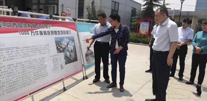On the afternoon of November 16, Anyang Municipal Committee Secretary Li Gongle visited Henan ChangQing Garment Co., Ltd., accompanied by Dong Lianghong, Huaxian County Party Secretary, Li Yong, Director of Huaxian NPC. Shao Demin, Director of JinTai Offi